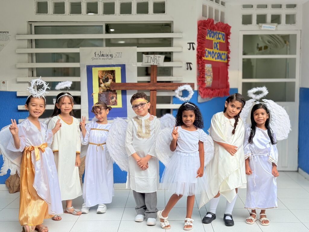 El Viacrucis Angelino se desarrolló como una valiosa actividad de formación espiritual, en la que los estudiantes participaron de manera activa en la representación de las estaciones. Este espacio se convirtió en una oportunidad para la reflexión y el fortalecimiento de la empatía, la paz y los valores que enriquecen la vida escolar. La comunidad educativa vivió un momento de unión y crecimiento espiritual, reafirmando el compromiso con la formación integral de los estudiantes y la promoción de una cultura basada en el respeto y la convivencia.
